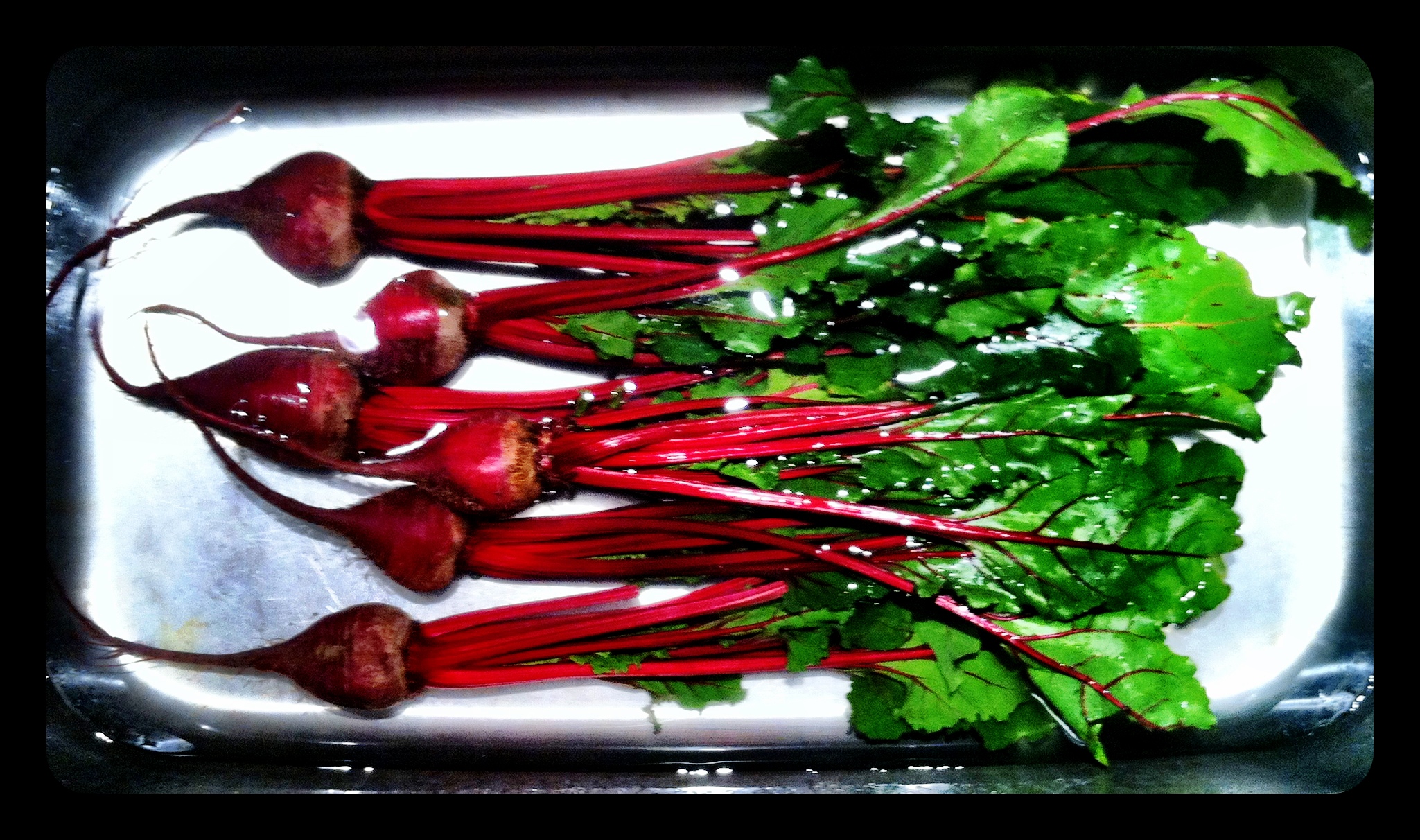 If you want to oven roast your beets instead: Rinse them but leave the skins on and individually wrap in tin foil with a drizzle of grape seed oil. Then pop into the oven for 30-45 minutes at 350 degrees. Skin usually slides off easily when done.
