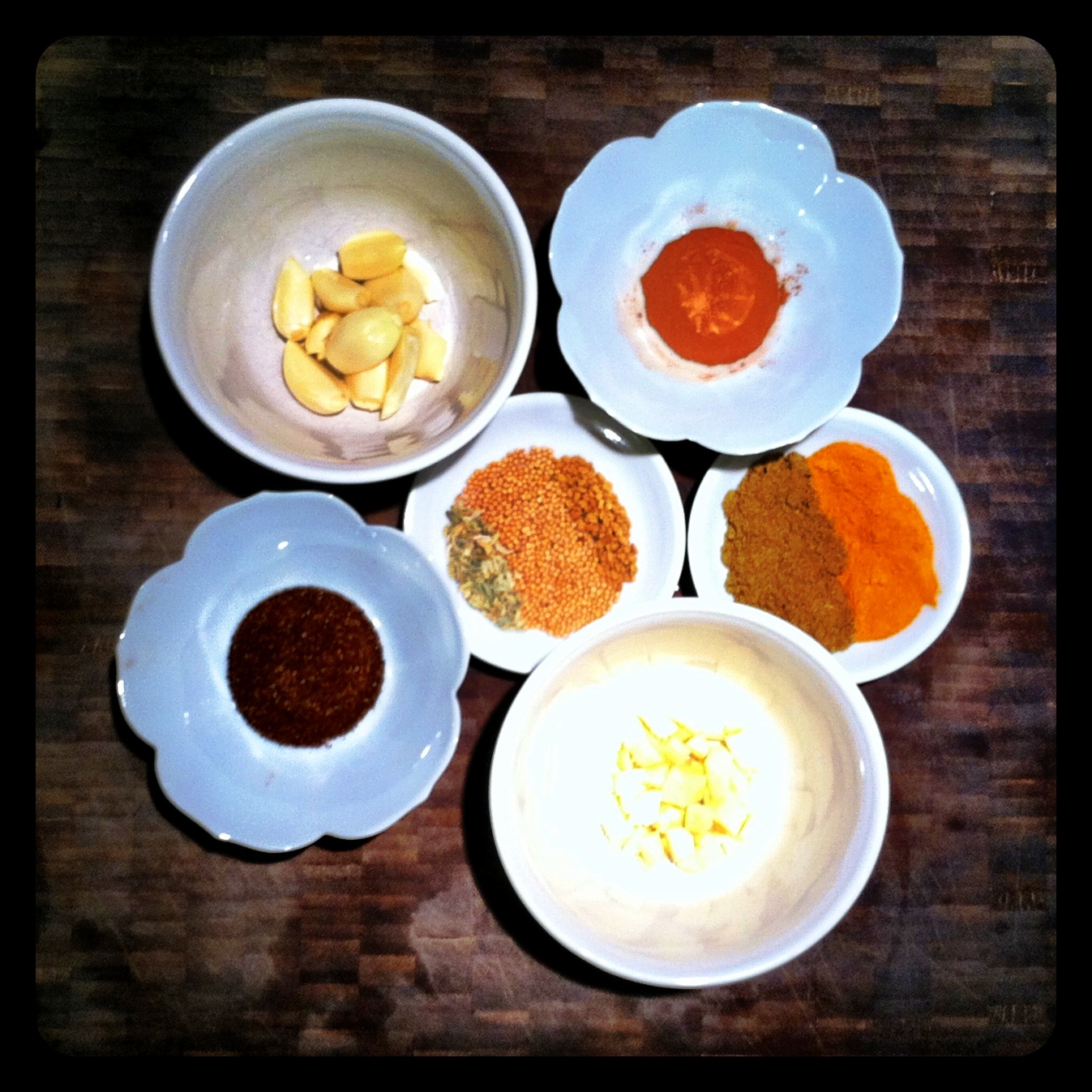 Toast the fenugreek, fennel and mustard seeds in a dry pan over medium heat until they become fragrant and darken in color, maybe 5 minutes.