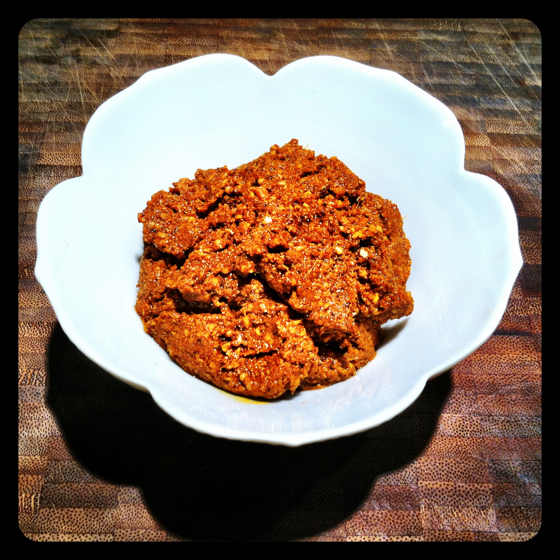Add all other ingredients except oil and tomato paste and process until a consistent texture.